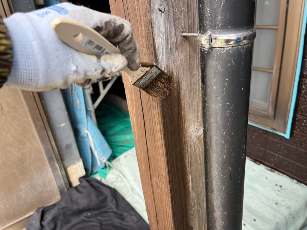 今回は、外壁塗装、屋根塗装、防水工事、軒天交換(災害復旧)を行いました。最後に光触媒コーティングも実施しているので最高仕様となります。以前に塗装された際に、あちこちにペンキがついていたということで悲しい想いをなされていました。今回は前回のペンキ汚れも掃除し、バッチリ綺麗に仕上げました。ちなみに光触媒コーティングは土間や犬走や玄関タイルにも塗布しておりますので長きにわたり綺麗を保てると思います。裏玄関にはウッドで組んだ軒先がありましたので、塗膜をつけて木目を消してしまう塗装ではなく、木目が活かせて、木本来の呼吸も止めないオイルステインを塗装させていただきました。