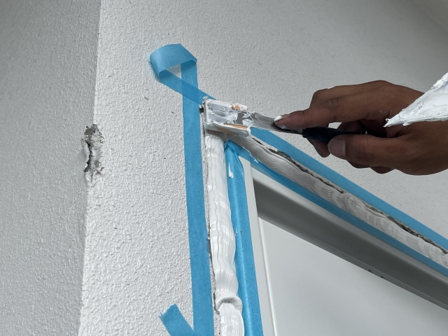 この工程では、コーキングガンなどの専用の道具を使用して、均等に材料を充填し、隙間が完全に埋まるようにします。