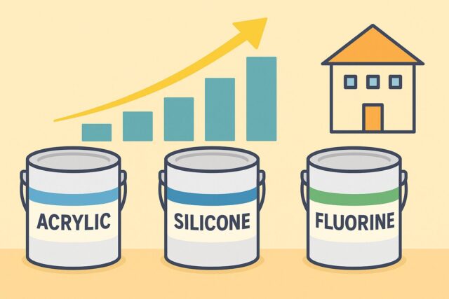 塗料のグレード:アクリル系よりもフッ素や無機系の高耐久塗料は価格が高めです。