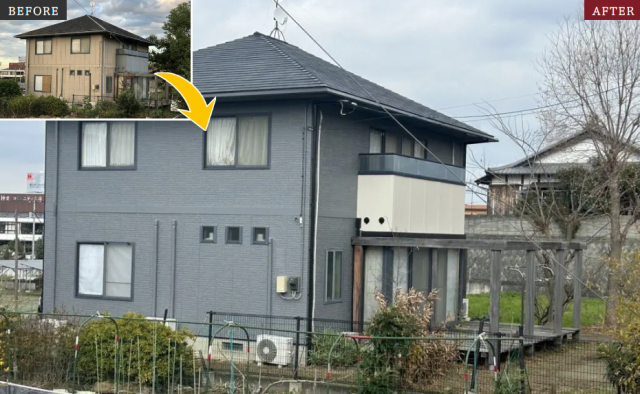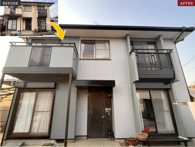 ビフォーと比べて、ベランダの色を変更しています。ベランダの色を変えることでアクセントとなるのでおすすめです。
