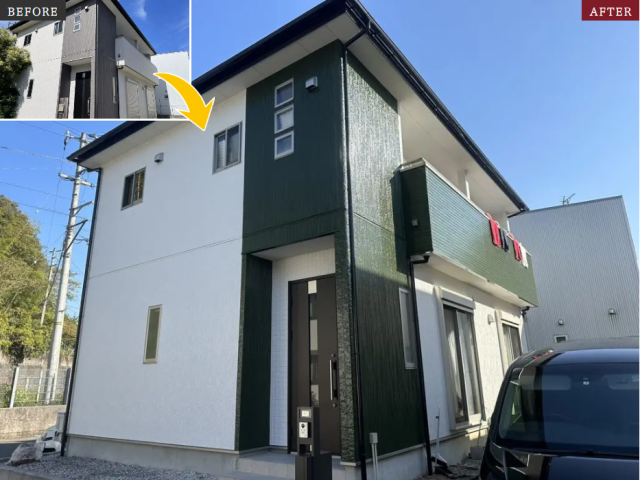 ・トレンド色を使用した外壁塗装(カーキー×ホワイト)