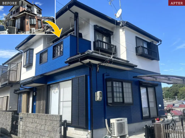 ・シックな雰囲気の素敵な外観(ホワイト×暗めのブルー)