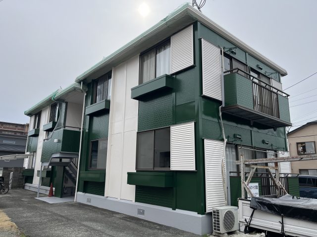 1.合志市 アパート塗装工事(グリーン×ホワイト)