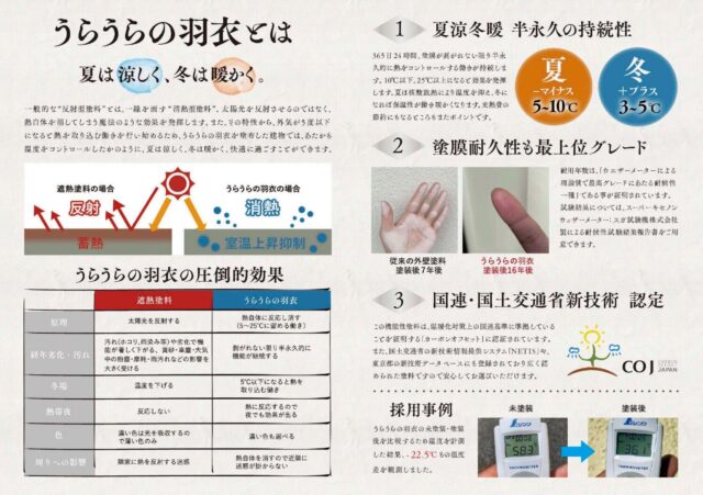 また、塗装に使う塗料の遮熱性能もポイントです。例えば当社「塗り処ハケと手」では、遮熱効果に優れた《極-kiwami-》を採用しています。