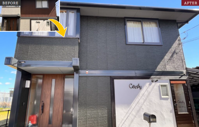以前のリフォームの際に不安を抱いてしまっていたお客様。度重なる打ち合わせにもお付き合い頂き、塗装を行うことになりました。今までは上下での色分けでしたが今回は『色分けを無くしたい』とのご要望から上下統一し、選んでいただいた濃いグリーンでの塗装をおこないました。思っていた通りの仕上がりになったとのお声をいただきました。