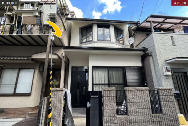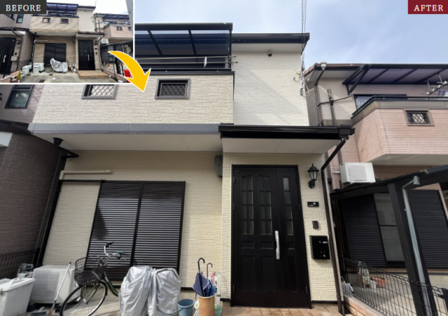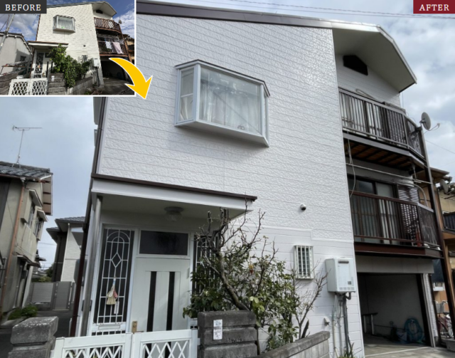 外壁の色をどんな色にするか悩んでおられたので、I様が納得いただけるまで何度も色合わせをさせていただきました。また塀の汚れも気にしておられたので、しっかりめに高圧洗浄させていただきました。ベランダ下の鉄部に白い斑点のようなものがまだらについていました。せっかく綺麗にするならということで、やすりで削ったのと塗装しました。完成したお家をみてこの色にしてよかった!ありがとうございます。などたくさんのお褒めの言葉をいただきました。施工期間は2週間ほどです。