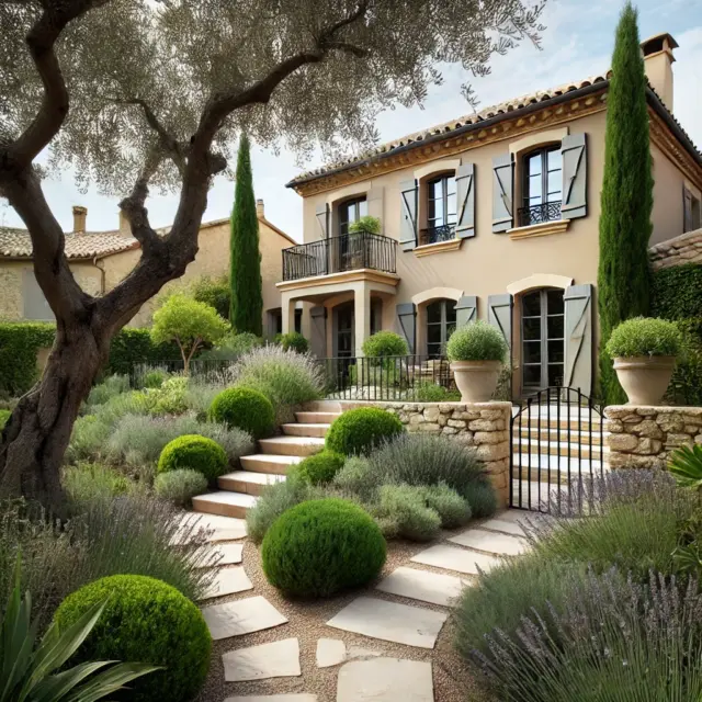 プロバンス風の外構デザインは、家の外壁色と調和することが非常に重要です。特に、自然素材を取り入れたデザインが好まれます。石畳のアプローチや、木製の門、鉄製のフェンスなど、自然素材を活かした外構がプロバンス風の特徴です。