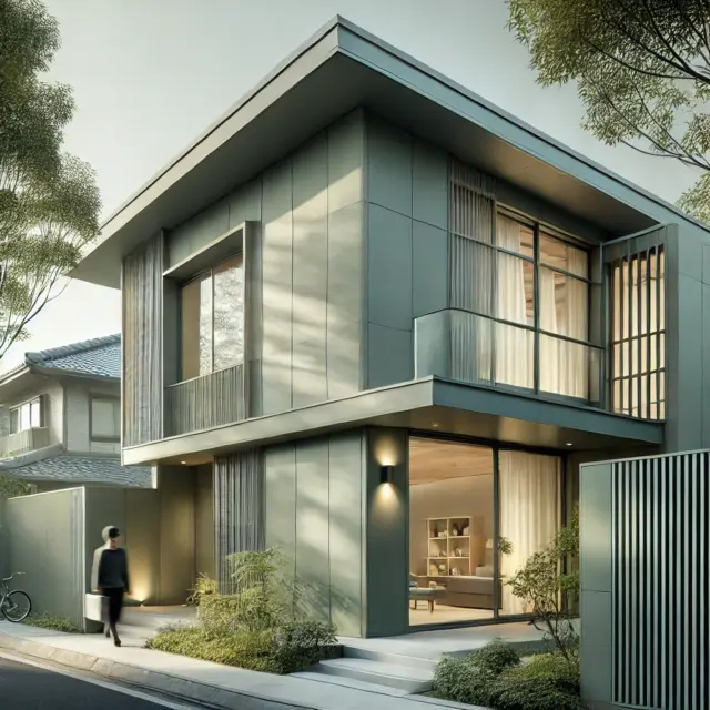 グリーングレーの外壁は、シンプルでモダンなデザインを実現しながらも、落ち着いた印象を与えるため、都会的な住宅から自然豊かな郊外の一軒家まで幅広く選ばれています。また、2024年のトレンドカラーとしても注目されているため、長く愛される外観デザインが可能です。