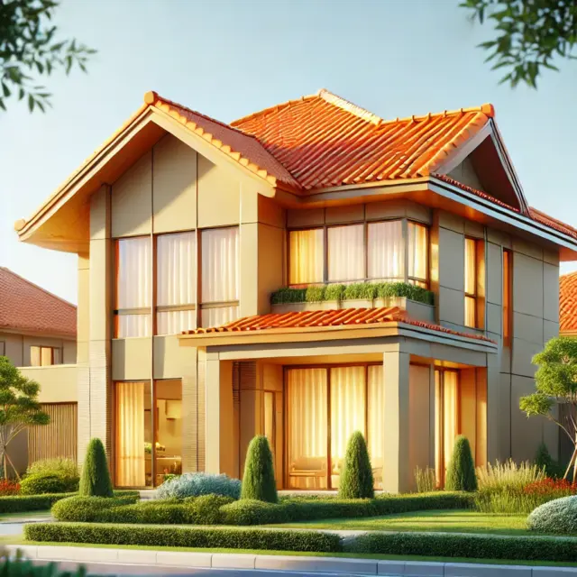 例えば、ベージュやアイボリーの外壁は、オレンジの瓦と最も調和が取れる定番の組み合わせです。これにより、家全体が明るく温かみのある雰囲気に仕上がります。また、オレンジの屋根が引き立ちながらも、外壁が派手すぎず、全体のバランスが整います。