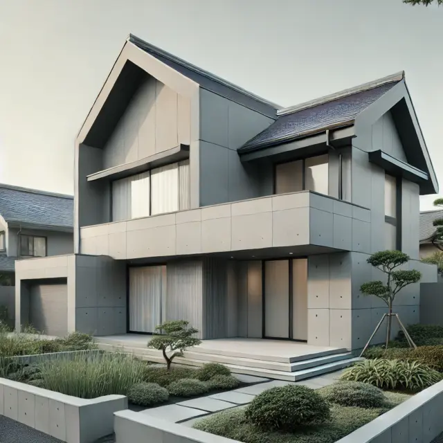 - モダンスタイル:直線的でシンプルなデザインの家には、アッシュグレー外壁が非常に映えます。無駄のない洗練された印象を与え、都会的な雰囲気を作り出します。