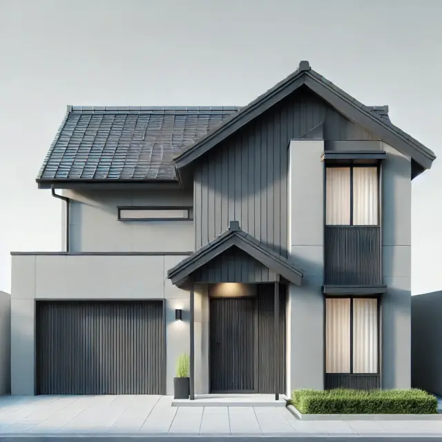 落ち着いたグレーのトーンは、目立ちすぎず、家の全体像を引き締める効果があります。特に、シンプルでモダンなデザインの家にぴったりで、周りの景観ともうまく調和します。