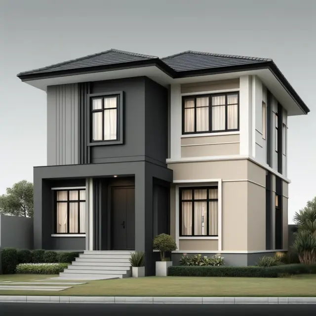 ダークグレーと白、またはアイボリーの組み合わせは定番で、モダンな雰囲気を強調することができます。白を窓枠や縁に使用することで、コントラストが生まれ、家全体が明るく引き締まります。また、白を多めに使うことで、ダークグレーの落ち着いた印象がより映えます。