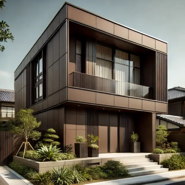 茶色を使ったツートンカラーは、外観に立体感を与え、シンプルながらもおしゃれな印象を作り出すデザイン手法です。