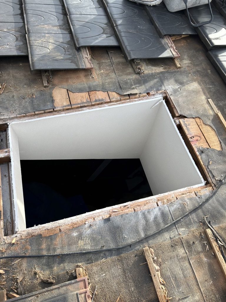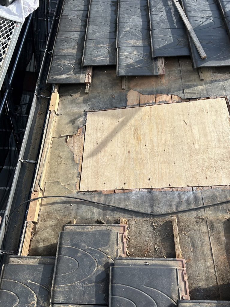 施工内容 | コーキング撤去打ち換え、屋根雨漏りトップライト撤去瓦葺き |