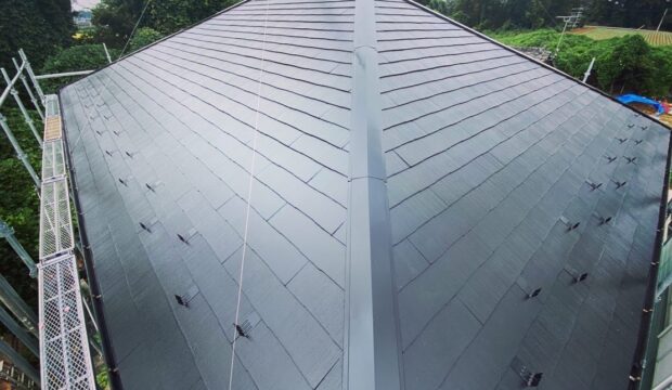 無機フッ素後光触媒でコケ汚れを雨と太陽の光で汚れを分解という画期的な塗料を使用致しました