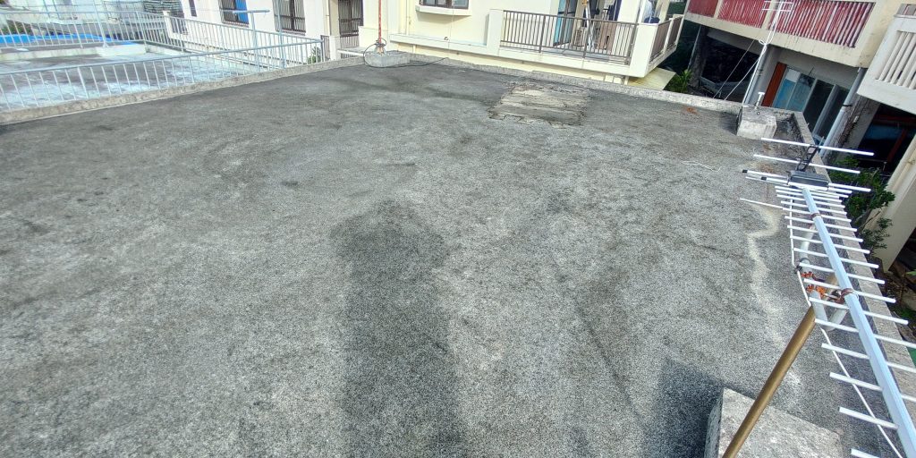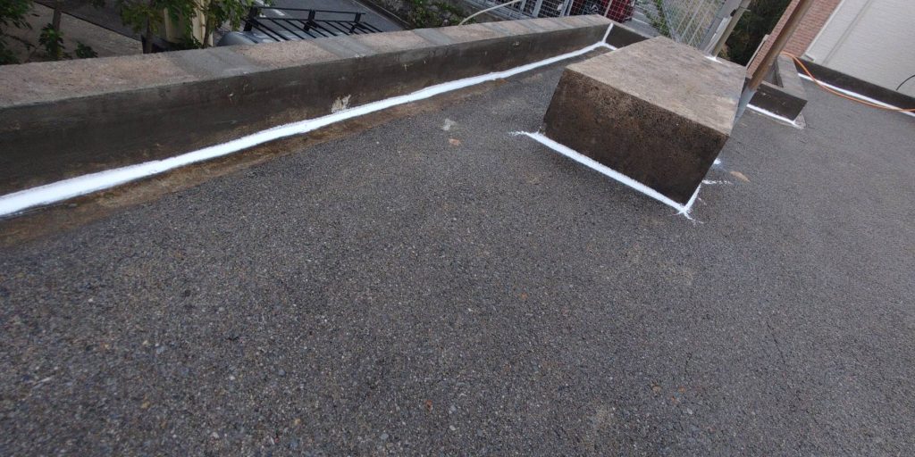 施工内容 | 1、はつり作業 2、洗浄作業 3、ひび割れ補修 4、鉄部さび止め塗布 5、下地調整材塗布(1回) 6、プライマー塗布(2回) 7、入り隅コーキング 8、防水材塗布(2回) 9、遮熱コート塗装(2回) |