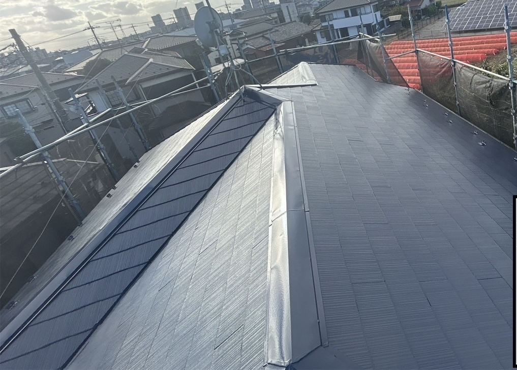 色のかぶりに気を遣い、しっかり3度塗りで仕上がりました。破風板も旧塗膜をしっかりケレンし、綺麗に仕上がりました。